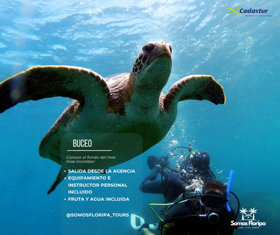 Equipamiento: Neoprene, Chaleco inflable, Regalador de aire, Cilindro, Cinto de lastre, Mascara, Snorkel, y Patas de Rana